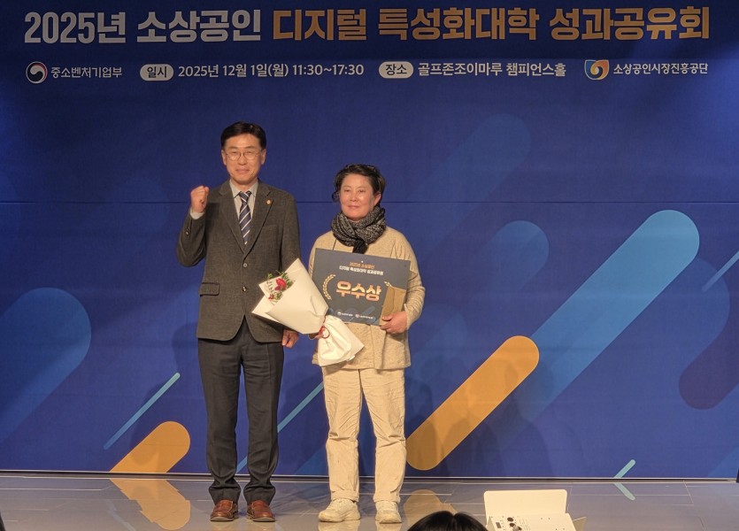 국립목포대는 지난 1일 대전 골프존조이마루에서 소상공인시장진흥공단 주관으로 열린 ‘2025년도 소상공인 디지털 특성화대학 성과공유회’에서 4회차 교육 수료생 이은혜 씨(웰리스해남농업회사법인 대표)가 전국 10개 참여 대학 중 우수상을 수상했다고 밝혔다.